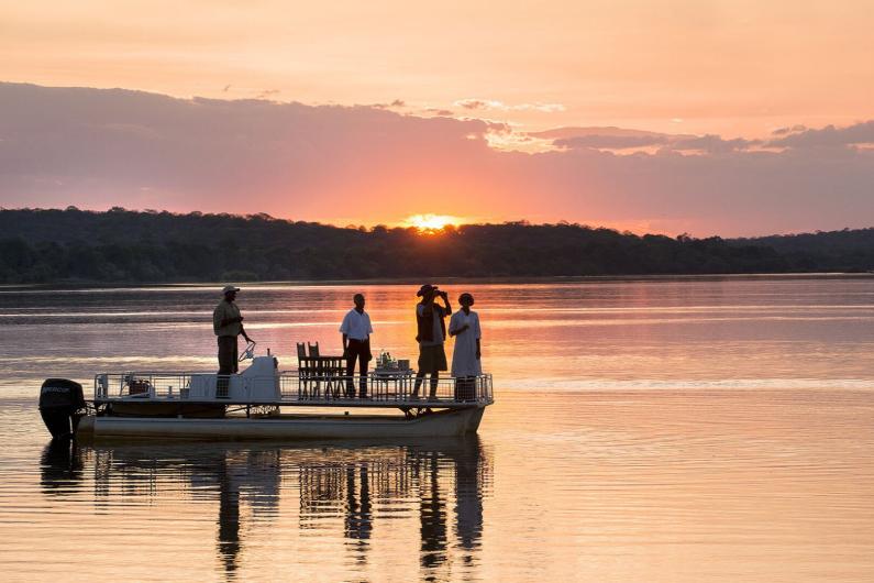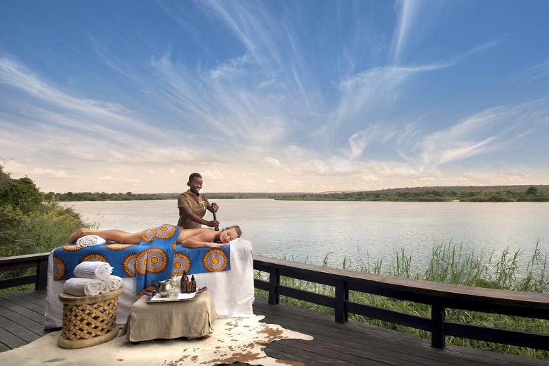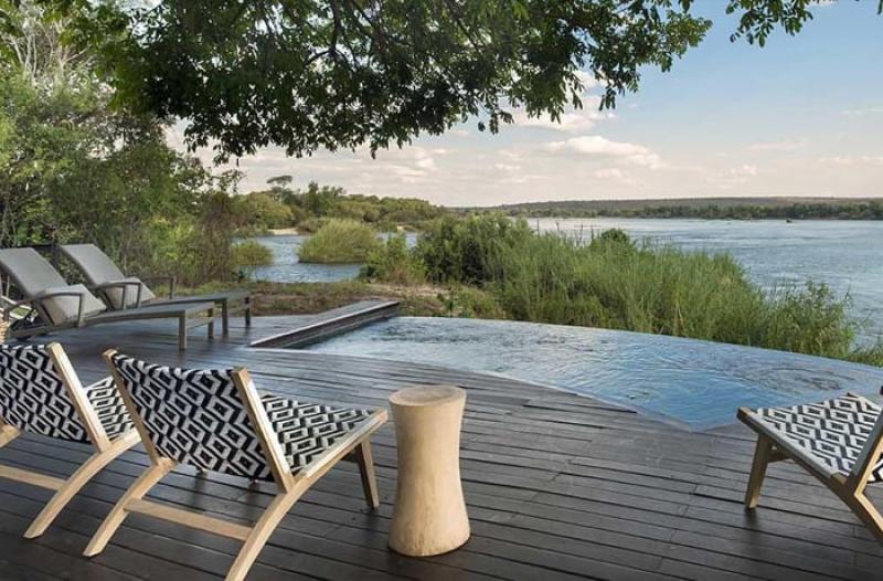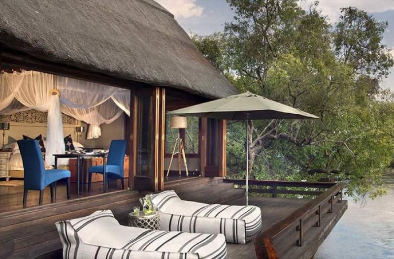 The exclusive Royal Chundu Island Lodge is located on Katombora, a privately-owned island on the Zambezi River in Zambia. Each of the four magnificent air-conditioned villas has a spectacular deck and a large open-air bath. The Victoria Falls in Zambia and Chobe National Park in Botswana are two spectacular landmarks nearby. This safari lodge offers exciting activities that include cruises, birding safaris, fishing, canoeing, Victoria Falls and village tours.