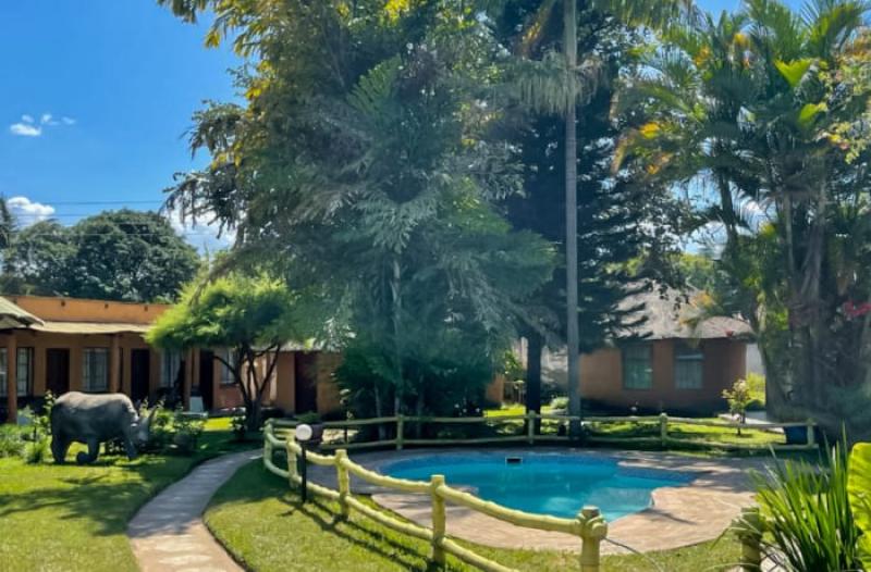 Reed Mat Lodge, located at 9718 5th Street, Munali, Lusaka, offers a tranquil retreat with authentic Zambian hospitality. The lodge features a variety of accommodation options, including six ensuite double thatched chalets, five self-contained standard rooms, and four rooms within the main house, catering to diverse preferences and budgets. Guests can enjoy a peaceful garden setting, a casual dining restaurant, a fully stocked bar, and a spacious conference facility. Additional amenities include airport shuttle services, free Wi-Fi, and a children's playground, ensuring a comfortable and convenient stay. Whether visiting for business or leisure, Reed Mat Lodge provides a welcoming environment for all guests.
